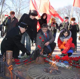 По окончании митинга состоялось торжественное возложение цветов к Вечному огню.