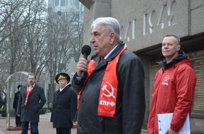 После возложения цветов к собравшимся обратился Первый секретарь Севастопольского городского комитета КПРФ Пархоменко Василий Михайлович. «В этот день 100 лет назад в боях с немецкими захватчиками под Псковом и Нарвой родилась Рабоче-Крестьянская Красная Армия. По призыву Коммунистической партии тысячи рабочих и крестьян поднялись на защиту своего социалистического Отечества. Более 70 лет — с 1918 года до конца 1980-х годов — наша армия была гордостью народа, его опорой и защитой. Красная, Советская Армия одержала славные победы на фронтах гражданской войны и военной интервенции, под руководством И.В. Сталина разгромила фашизм и освободила народы Европы от фашистского рабства», — сказал Василий Михайлович в своём выступлении.