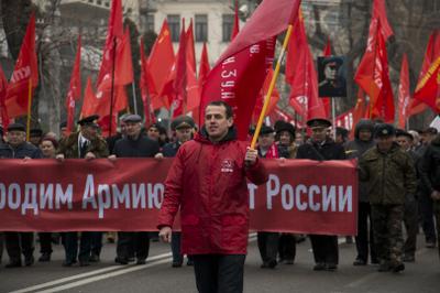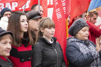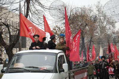 Баннер «Возродим Армию и Флот» в голове колонны несли члены ЦК партии Н.И. Осадчий и П.В. Соколенко, другие коммунисты-депутаты, представители руководства крайкома КПРФ и Союза офицеров, молодые активисты.